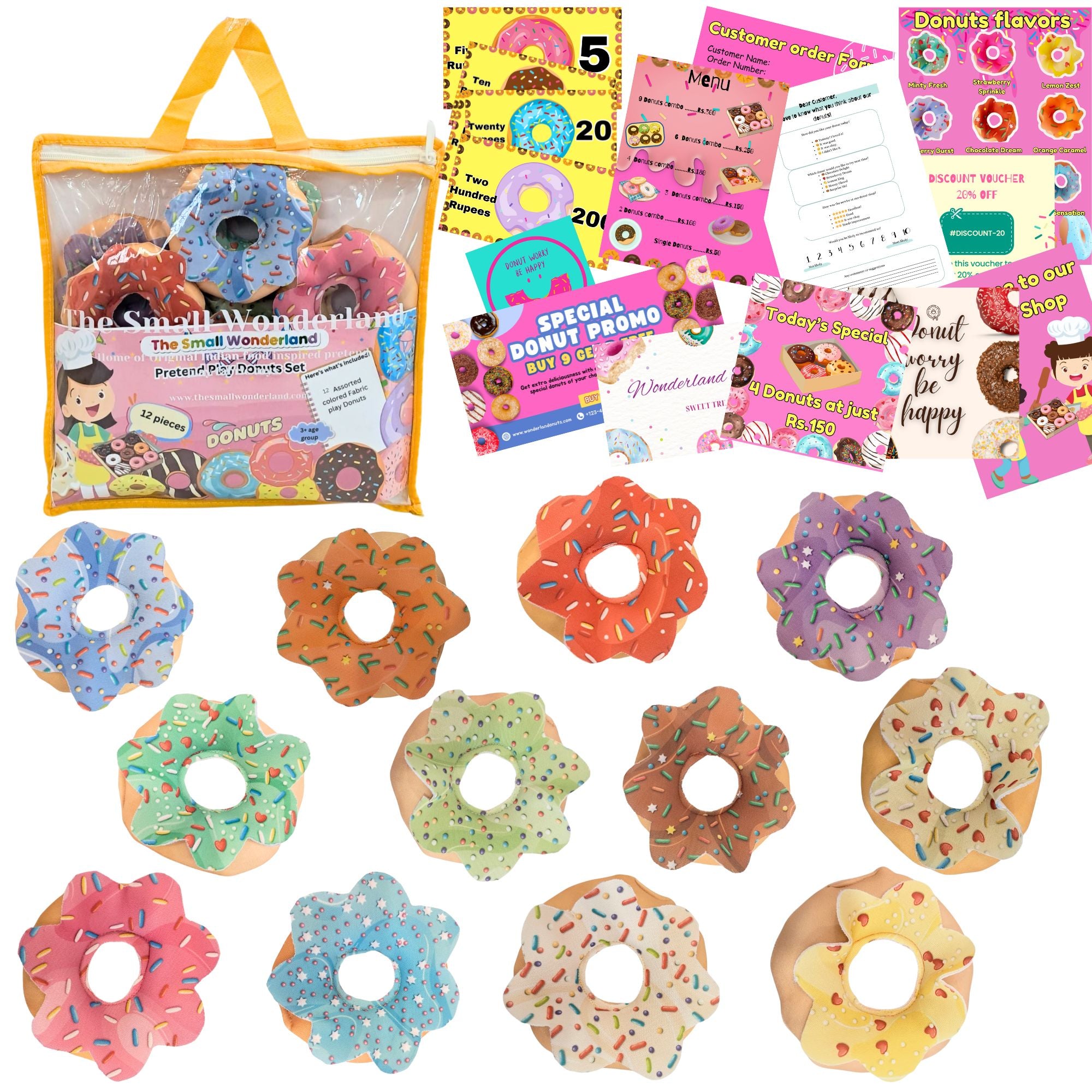- 12 Assorted Fabric Donuts: A delightful assortment of colorful, soft fabric donuts—perfect for pretend baking and serving.